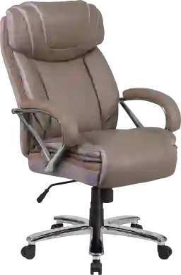 The Marvin taupe desk chair features plenty of thick plush padding for comfort along with an embellished mesh trim throughout the chair. Its high back extends to the upper back for greater support. The high back design relieves tension in the lower back, preventing long term strain. The included headrest will take the pressure off of your neck while leaning back. The tilt lock mechanism offers a comfortable rocking/reclining motion. The free rein motion is great for taking a quick break from typing to answer phone calls and relax. The waterfall front seat edge removes pressure from the lower legs and improves circulation. Chair easily swivels 360 degrees to get the maximum use of your workspace without strain. The pneumatic adjustment lever will allow you to easily adjust the seat to your desired height. The chrome base adds a stylish look to complement a contemporary office space. Customer assembly is required.