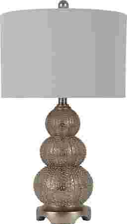 Coastal meets luxe to bring the allure of the sea indoors. Place the Marylin table lamp on a night stand, entryway or console table to brighten a dull corner while adding an eye catching glamorous accent piece to your space. The shapely gourd base is finished in an elegant silver leaf finish that reflects the light and makes your room feel brighter even when the light is off. The white linen drum shade keeps the look modern and fresh. Constructed of resin. Customer assembly is required.