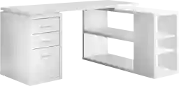 This "L" shaped Massillon computer desk will be a stunning focal point in your contemporary home office. This simple and stylish piece features thick panels and clean lines, in a white finish. The desk portion offers a spacious work surface that is great for doing paperwork or working on your computer. It also features two medium storage drawers and a convenient lateral file drawer below to help keep you organized. The secondary surface offers additional work space with extra adjustable shelves that can be used for a printer, books, and files. The silver colored handles and feet boldly accent the piece making it a must-have for any home or office space. Customer assembly required.