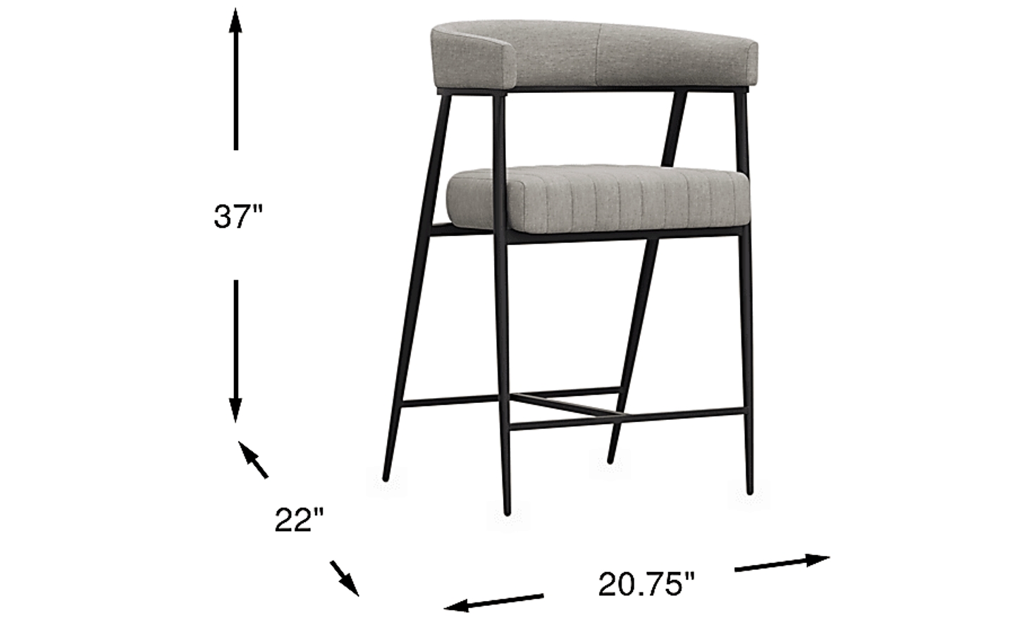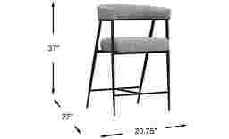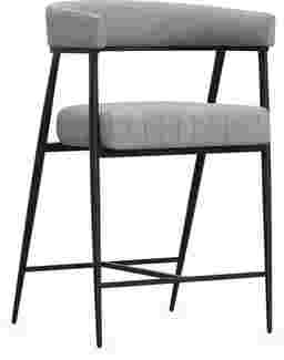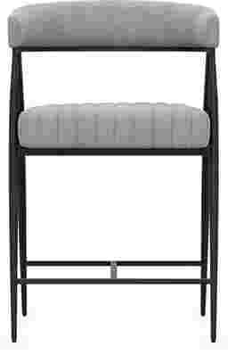 Leaning into cocktail-hour conversations or indulging in at-home relaxation, the Mathis stool is midcentury-inspired contemporary style rendered in graceful metal and soft gray fabric. Four metal legs in black each taper to a point, held steady with stretchers that conveniently function as footrests. The upholstered seat features a wrap-around back and channeled details, providing a touch of softness for those conversations that run long into the night.