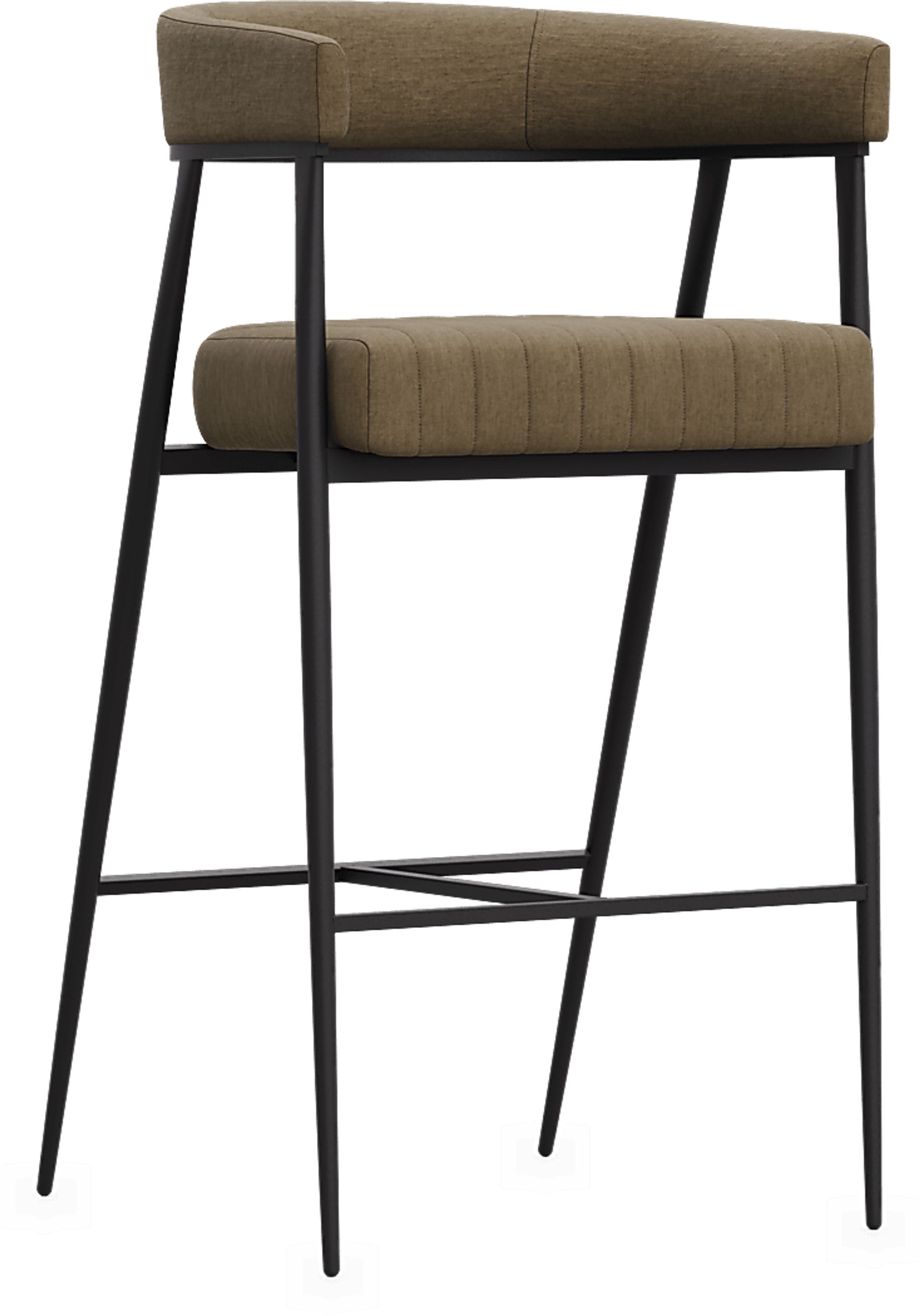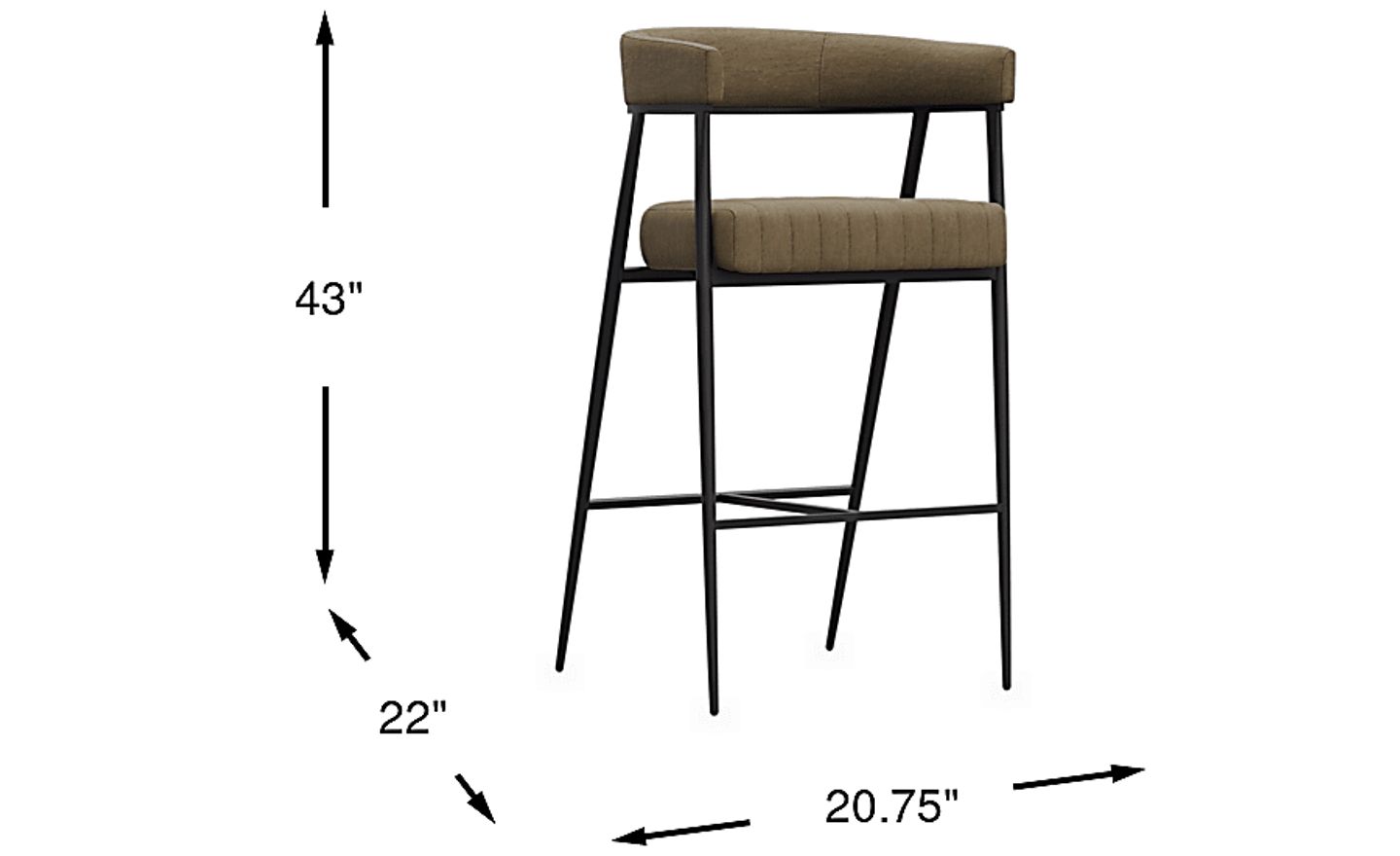 Leaning into cocktail-hour conversations or indulging in at-home relaxation, the Mathis stool is midcentury-inspired contemporary style rendered in graceful metal and velvety green fabric. Four metal legs in black each taper to a point, held steady with stretchers that conveniently function as footrests. The upholstered seat features a wrap-around back and channeled details, providing a touch of softness for those conversations that run long into the night.