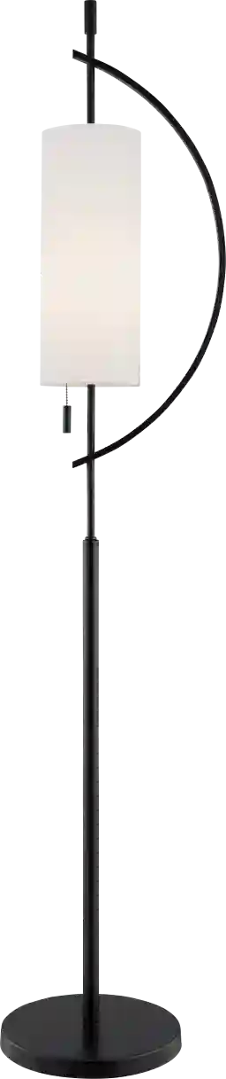 The Mattei Court floor lamp features black metal body in sleek crescent design to introduce the white fabric column shade. When the lamp is turned on, it glows peacefully in your cozy home. The pull-chain switch design adds to the elegance. Partial assembly may be required.