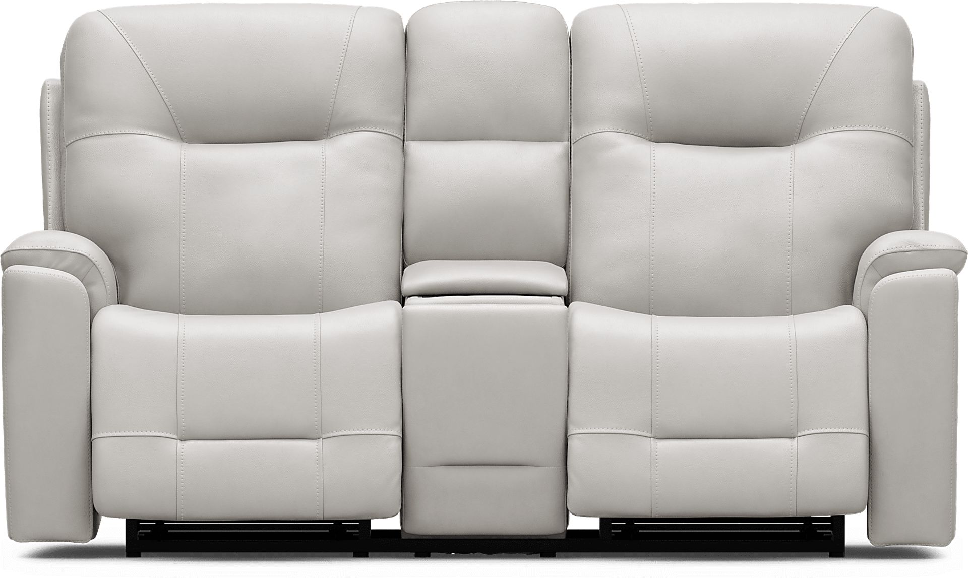 Upscale design with a family friendly flair makes the Matthew's Cove triple power reclining collection perfect for lounging in your living space. Transitional in style and upholstered with top grain leather where the body touches, this console loveseat features padded arms and attached seat and back cushions for a luxurious feel. Zero gravity recline paired with the power headrest and lumbar provide the utmost supportive and relaxing, weightless experience. Added features like hidden cupholders, a wireless charging station and USB on switch elevate the cozy feel. Upholstery: Top grain leather where the body touches and vinyl sides and backs.
