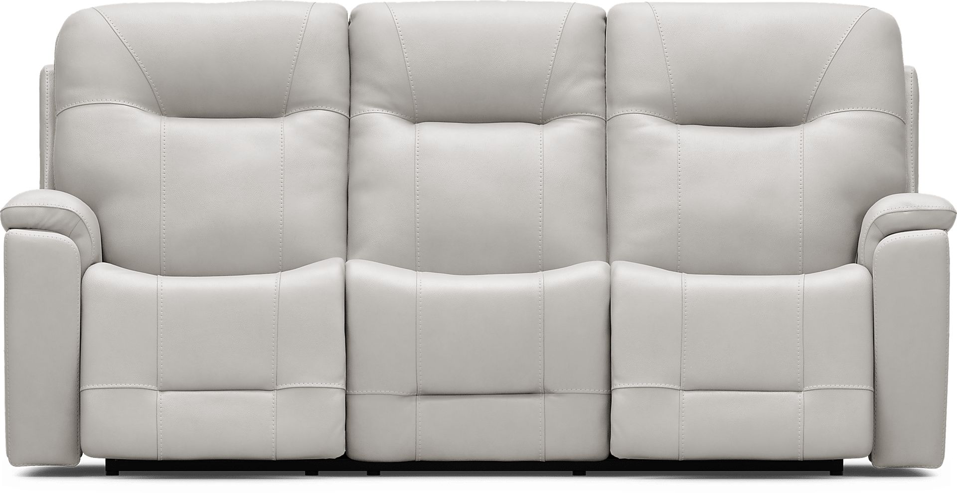 Upscale design with a family friendly flair makes the Matthew's Cove triple power reclining collection perfect for lounging in your living space. Transitional in style and upholstered with top grain leather where the body touches, this sofa features padded arms and attached seat and back cushions for a luxurious feel. Zero gravity recline paired with the power headrest and lumbar provide the utmost supportive and relaxing, weightless experience. Added features like hidden cupholders and USB on switch elevate the cozy feel. Upholstery: Top grain leather where the body touches and vinyl sides and backs.