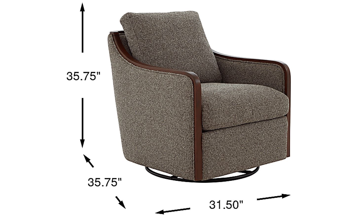 Grounded beauty and timeless design calm the mind and comfort the body as the Mattingly swivel chair's vibe flows effortlessly from its sculptural lines and warm texture. Upholstered in brown woven fabric, this traditional piece's plush seat and back cushions invite you to unwind comfortably. Gently sloped track arms framed by rich brown accent panels bring a refined structure to its soft silhouette. The smooth 360-degree swivel chair adds seamless movement, keeping you engaged while you're hosting, relaxing or simply enjoying the moment. Upholstery: 100% polyester.