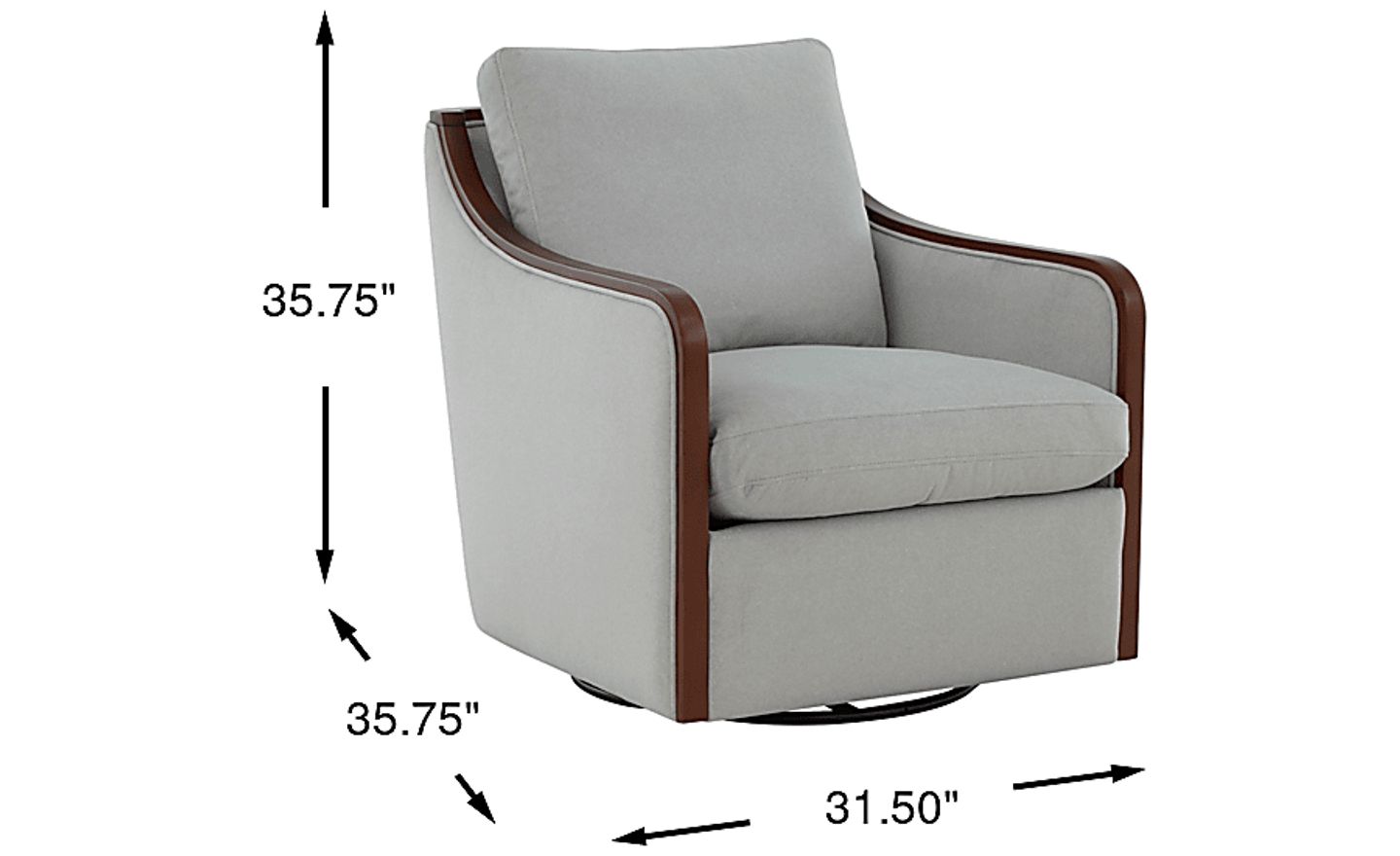 Grounded beauty and timeless design calm the mind and comfort the body as the Mattingly swivel chair's vibe flows effortlessly from its sculptural lines and warm texture. Upholstered in soft gray fabric, this traditional piece's plush seat and back cushions invite you to unwind comfortably. Gently sloped track arms framed by rich brown accent panels bring a refined structure to its soft silhouette. The smooth 360-degree swivel chair adds seamless movement, keeping you engaged while you're hosting, relaxing or simply enjoying the moment. Upholstery: 100% polyester.