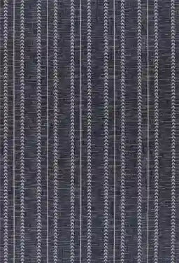 Effortlessly blending calm focus with dynamic energy, the relaxed flow of the Mavi rug brings serene rhythm to moments of rest. A field of cool navy blue is divided by white lines and rows of chevrons facing in the same direction.