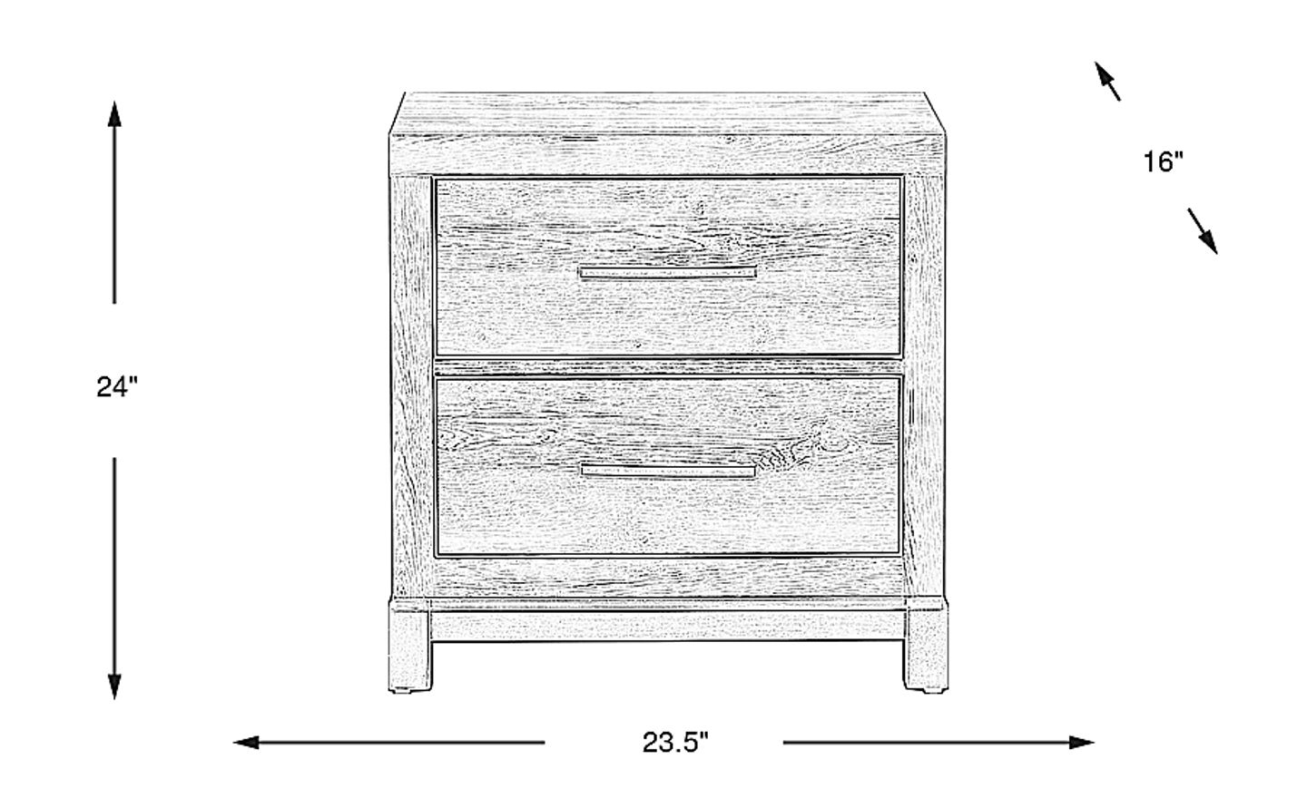 With dimensions of 23.5"w x 16"d x 24"h, this nightstand offers a practical footprint that is well-suited for smaller living spaces without sacrificing storage. Its contemporary, industrial-inspired design—featuring slim block legs and a metallic base—creates an airy, elevated look that helps prevent a compact room from feeling overcrowded.