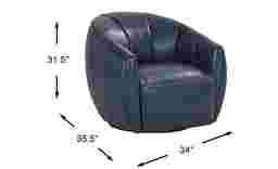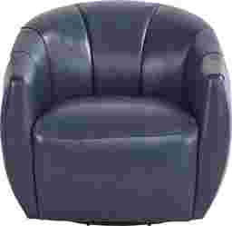 Exuding effortless sophistication and warm intimacy, the Drew & Jonathan Chatham swivel chair combines upscale style and casual design to achieve a handsome, charmingly cozy look. Upholstered in top grain leather where the body touches, this modern piece features a 365-degree swivel base for ease of movement and change of view. The curved frame is enhanced by the stylish flair arms while the channeled design on the back adds a touch of class. Top grain leather where the body touches. Polyurethane sides and back.