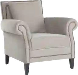 A regal design with elegant curves and plush comfort makes this chair a luxe staple in any space. The Mayport accent chair has mastered being stately without being arrogant, featuring rolled arms, antique nailhead trim, and a crisp combination of clean lines and curves throughout its silhouette. Plush rolled arms, a plump seat with a removable back cushion, and ultra-soft textured fabric make this comfortable seat a top contender for your new favorite spot to unwind. It's upholstered in stain resistant performance fabric and crafted with a solid wood frame and dark stained wood legs for lasting use. Customer assembly is required.