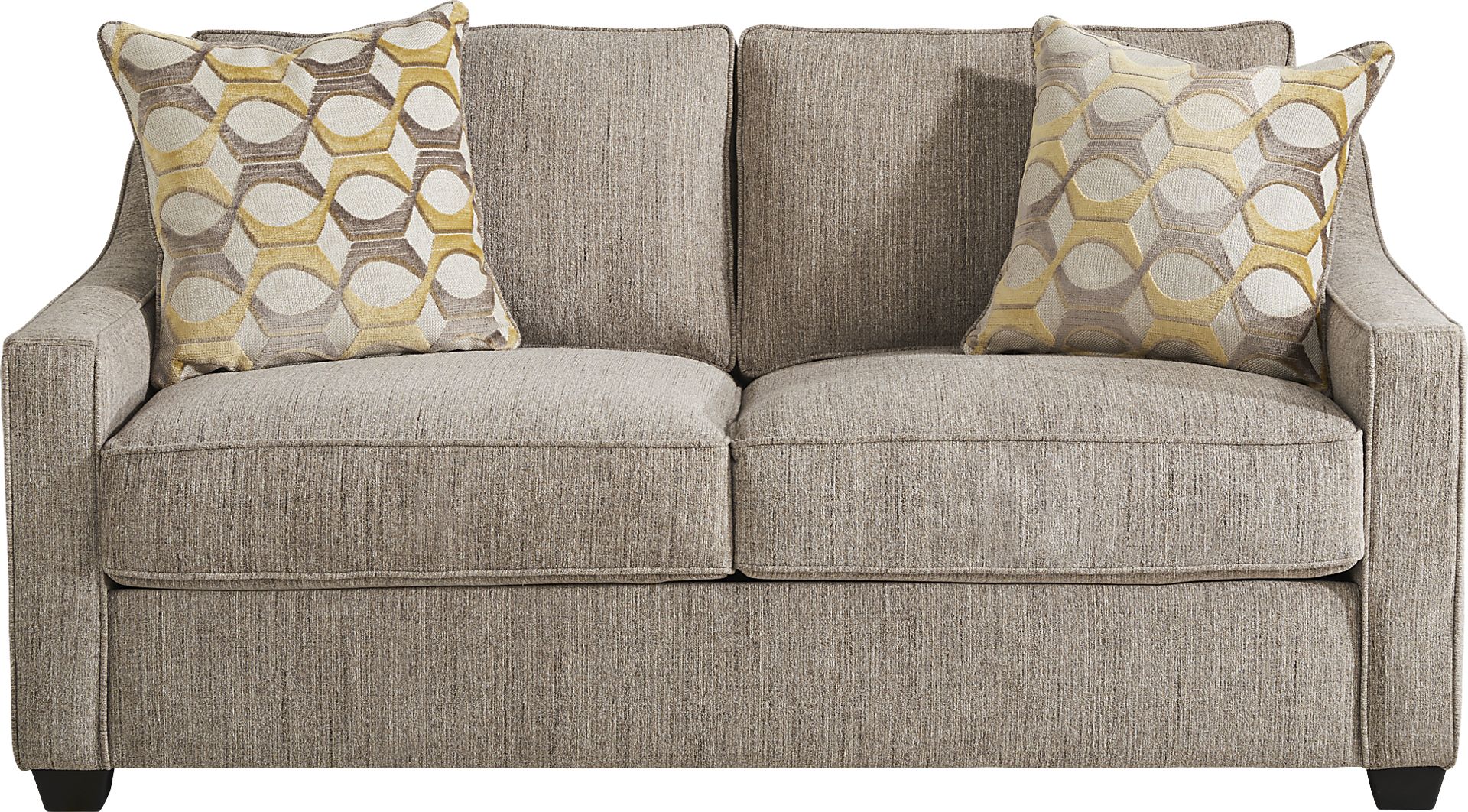Graceful, chic, and altogether charming, the Maywell Court loveseat brings understated class into any room it's in. Transitional in style, the brown woven upholstery perfectly complements the sophisticated track arm curves while three loose seat cushions and back cushions provide easy cleaning and enhanced longevity. Padded outside arms and backs add both softness and solidity, while tapered legs with black finish showcase a provocative contrast. Accent pillows add a light touch and visual contouring for style and depth. Upholstery: 100% Polyester.