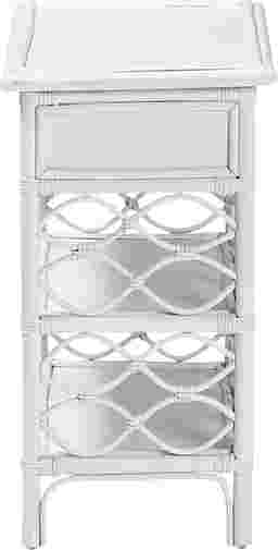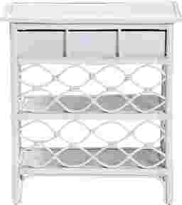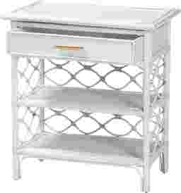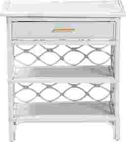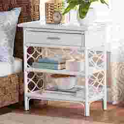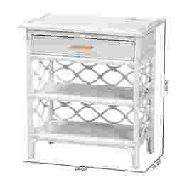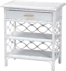 Complete the boho ensemble of your bedroom with the enchanting Mazefly white nightstand. This bohemian piece is handcrafted from sustainably sourced natural rattan. The drawer and two open shelves offer space to organize all your bedside essentials while reserving the tabletop for nightly use. The Mazefly will arrive fully assembled and features a lovely border of openwork rattan pole for a soothing presentation from every angle. A sleek elongated metal drawer pull completes the look, making the Mazefly nightstand a fantastic bedside complement. Rattan is a product of nature and may have variations in areas such as, but not limited to, color, pattern, grain and texture. The hair-like strands of rattan/rattan-fiber are common due to the nature of the material.