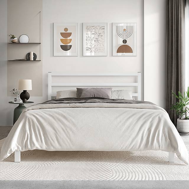 Elevate your bedroom with the Mazefruit metal platform bed, the embodiment of contemporary elegance and practicality. Its minimalist design seamlessly integrates into any living space, providing a sleek and uncluttered look. Crafted from premium-quality metal, this bed assures remarkable durability and stability, ensuring your investment stands the test of time. The powder-coated surface is rust-resistant, maintaining its pristine appearance for years to come. One standout feature is the elimination of the need for a box spring, not only streamlining the design but also offering cost savings. Keeping your space tidy is effortless, thanks to the easy-to-clean underside. Discover the perfect harmony of style, longevity, and convenience with this simple classic metal platform bed. Redefine your bedroom space today Customer assembly is required.