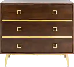 A natural beauty, this contemporary 3-drawer accent cabinet upgrades any living room or bedroom. Finely crafted to highlight the pattern of its walnut finish wood, its generous drawers ensure easy organization. Its posh gold-finished legs give it a charming retro spin. Customer assembly is required.