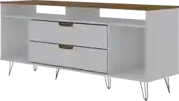 The Mcbean tv stand is the living room mainstay that's both the perfect media and entertainment focal point with ample storage space perfect for keeping DVD players and media accessories on display in lower open shelves beneath the TV or tucked away in two seamless lower drawers. Two open shelves on each side offer space for showcasing decorative accents baskets filled with your softest throw, and beyond. Stylish with splayed metal legs and Mid-Century design at its best, this piece gathers family and friends to create new memories together and to enjoy favorite movies. Customer assembly is required.