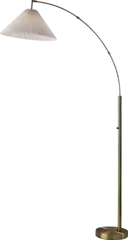 Illuminate your space with the grandeur of the Mcclellan Vista Brass Arc Floor Lamp. Featuring an antique brass base, this lamp exudes sophistication and timeless elegance. The off-white pleated, tapered shade softly diffuses light, creating a warm and inviting ambiance. With a towering height of 76 inches, this arc floor lamp commands attention while providing ample illumination. Whether placed in the living room, bedroom, or office, it effortlessly enhances your space with its classic design and practical functionality. Partial assembly may be required.
