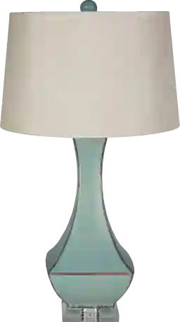 This lamp is crafted with a glazed ceramic body, a material prized for its exceptional durability and color depth. The glazing process creates a protective, non-porous finish that ensures the vibrant seafoam teal color will not fade or scratch easily. The translucent crystal base is not only a sophisticated design detail but also provides a heavy, high-density foundation that ensures the lamp remains stable and upright.