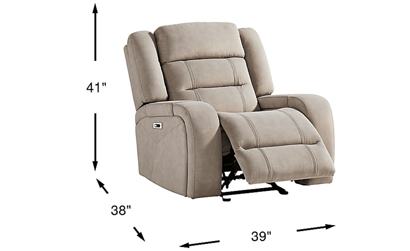 A calming hush settles, the room begins to feel less like a place and more like a quiet, comfortable pause as the McKinley collection's soft textures and clever luxury invite effortless relaxation. This classically styled recliner is wrapped in soft beige microfiber and showcases generously deep tufting for a cloudlike silhouette. Contrasting top-stitched seams add tailored definition throughout, while the seats and back feature highly decorative double stitching for a refined touch. The additional delight of power reclining includes power adjustable footrest and USB charging ports set into the control panels. For a delightful final touch, hidden cupholders tucked into the arms offer a sleek solution for keeping drinks within reach. Upholstery: 100% polyester.