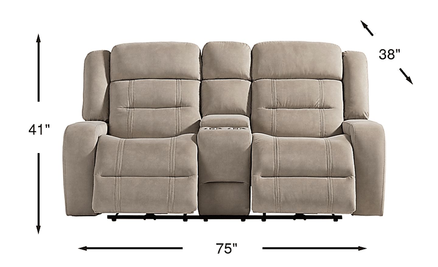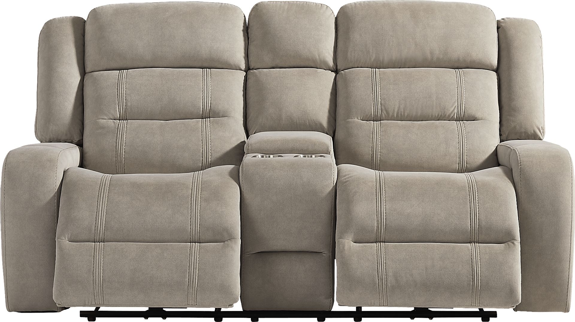 A calming hush settles, the room begins to feel less like a place and more like a quiet, comfortable pause as the McKinley collection's soft textures and clever luxury invite effortless relaxation. This classically styled loveseat is wrapped in soft beige microfiber and showcases generously deep tufting for a cloudlike silhouette. Contrasting top-stitched seams add tailored definition throughout, while the seats and back feature highly decorative double stitching for a refined touch. The additional delight of power reclining includes power adjustable footrest and USB charging ports set into the control panels. Hidden cupholders tucked into the arms offer a sleek solution for keeping drinks within reach. For a delightful final touch, the center console comes with additional storage and cupholders. Upholstery: 100% polyester.