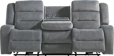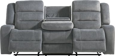 A calming hush settles, the room begins to feel less like a place and more like a quiet, comfortable pause as the McKinley collection's soft textures and clever luxury invite effortless relaxation. This classically styled sofa is wrapped in soft graphite gray microfiber and showcases generously deep tufting for a cloudlike silhouette. Contrasting top-stitched seams add tailored definition throughout, while the seats and back feature highly decorative double stitching for a refined touch. Hidden cupholders tucked into the arms offer a sleek solution for keeping drinks within reach, while the center fold-down table includes extra cupholders, a storage pocket and wireless charging. For a delightful final touch, power reclining includes power adjustable footrest and USB charging ports set into the control panels. Upholstery: 100% polyester.