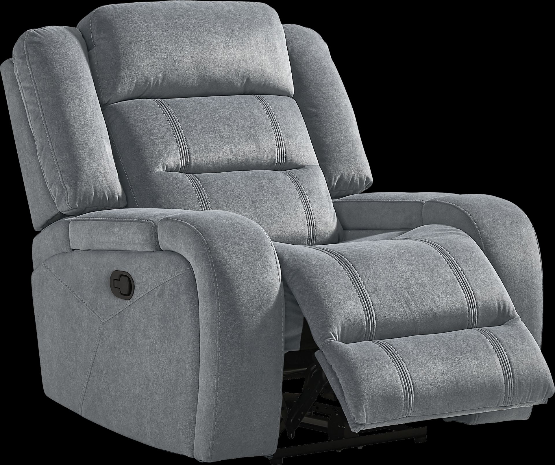 A calming hush settles, the room begins to feel less like a place and more like a quiet, comfortable pause as the McKinley collection's soft textures and clever luxury invite effortless relaxation. This classically styled recliner is wrapped in soft graphite gray microfiber and showcases generously deep tufting for a cloudlike silhouette. Contrasting top-stitched seams add tailored definition throughout, while the seats and back feature highly decorative double stitching for a refined touch. Hidden cupholders tucked into the arms offer a sleek solution for keeping drinks within reach. For a delightful final touch, this piece provides gentle gliding motions and easy reclining with the pull of a handle. Upholstery: 100% polyester.