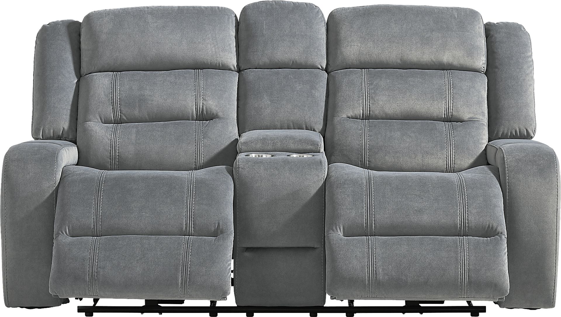 A calming hush settles, the room begins to feel less like a place and more like a quiet, comfortable pause as the McKinley collection's soft textures and clever luxury invite effortless relaxation. This classically styled loveseat is wrapped in soft graphite gray microfiber and showcases generously deep tufting for a cloudlike silhouette. Contrasting top-stitched seams add tailored definition throughout, while the seats and back feature highly decorative double stitching for a refined touch. The additional delight of power reclining includes power adjustable footrest and USB charging ports set into the control panels. Hidden cupholders tucked into the arms offer a sleek solution for keeping drinks within reach. For a delightful final touch, the center console comes with additional storage and cupholders. Upholstery: 100% polyester.