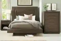 The bed is engineered for "quiet strength," mirroring the rugged durability of a mountain retreat. It features a heavy panel headboard anchored by bold concentric molding and is supported by sturdy block legs. This combination of traditional rustic detailing and solid structural elements ensures the bed remains a stable centerpiece in your bedroom for years to come.