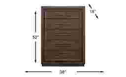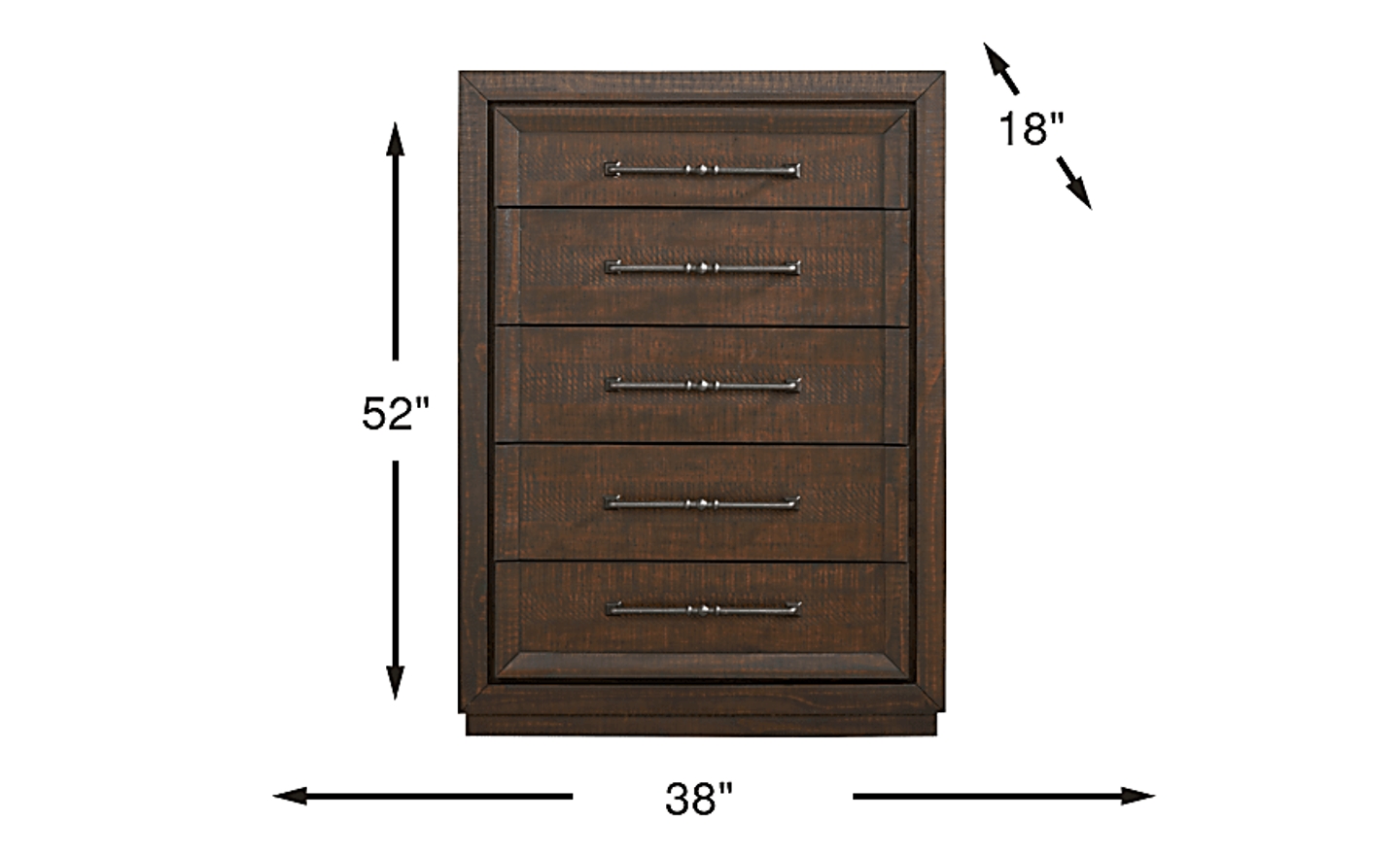 The quiet strength of a mountainside lodge taking in the crisp air of a morning breeze comes to life in the Mckinnon collection's tailored character, thoughtful details, and charming warmth. Rustic in style, this chest comes in a rich dark brown finish and features five spacious drawers to store away your bedroom essentials. The plinth-style base adds a seamless, grounded look while custom iron gray bar pulls complete the ensemble with elevated details. `