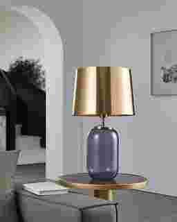 The Mclean Road Purple Lamp blends rich color with refined metallic accents for an elevated, modern look. A transparent indigo glass base pairs beautifully with brushed gold hardware and a matching gold foil shade, adding warmth and depth to any space. This striking piece casts a soft ambient glow that enhances both bold and neutral interiors. A perfect accent for bedrooms, living rooms, or curated office spaces. Partial assembly may be required.
