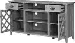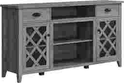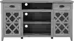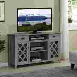 Give your space the upgrade it deserves with the addition of the Mcvicker tv stand. This unit features a spacious top surface, two drawers, two cabinets, and open shelving in the center of the unit. The top surface is a prime spot for your tv and smaller decor to serve as accents. Each of the cabinet and drawers have knobs and handles that make for easy access. The intricate design of the cabinet doors speaks to the craftsmanship of the unit. The drawers on either side would be perfect for remotes, smaller devices, and other miscellaneous items that need a home. Customer assembly is required.