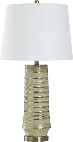 The Meado Gold Lamp, wonderfully crafted with ceramic and steel, brings a touch of style and function to any room. From a casual living room to a chic office, or a cozy bedroom, its elegance fits seamlessly. With a white fabric shade, it produces a calming glow for an invitingly warm ambiance. Perfect for a reading corner in the bedroom, or as a statement piece in the office or living room. Partial assembly may be required.