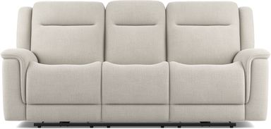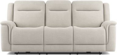 Where soothing relaxation and vibrant connection unfold naturally, the Meadow Park sofa offers a setting grounded in warm tranquility. This transitional collection features soft, padded curves upholstered in cement-colored woven fabric. Scoop seats and pillow arms provide inviting comfort and support to sink into, and the plush seat backs enable blissful sessions of extended relaxation. Dual power reclining includes independently adjustable headrests and footrests as well as USB charging ports on each control panel. This sofa also features a fold down table in the center with cupholders for even more convenient leisure. Upholstery: 100% Polyester.