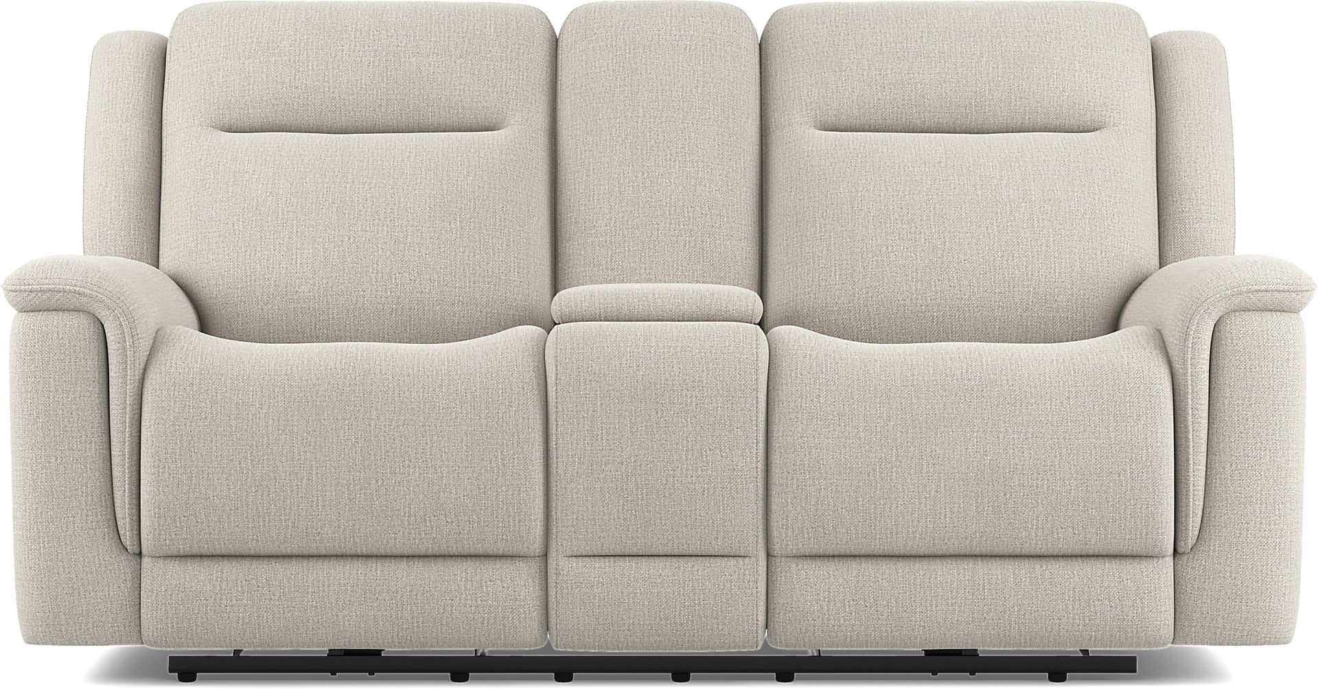 Where soothing relaxation and vibrant connection unfold naturally, the Meadow Park loveseat offers a setting grounded in warm tranquility. This transitional piece features soft, padded curves upholstered in a cement-colored woven fabric. Scoop seats and pillow arms provide inviting comfort and support to sink into, and the plush seat backs enable blissful sessions of extended relaxation. Dual power reclining includes independently adjustable headrests and footrests as well as USB charging ports on each control panel. This loveseat also features a center console with storage and cupholders for even more convenient leisure. Upholstery: 100% Polyester.
