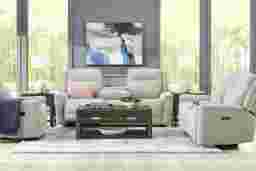 Where soothing relaxation and vibrant connection unfold naturally, the Meadow Park sofa offers a setting grounded in warm tranquility. This transitional collection features soft, padded curves upholstered in cement-colored woven fabric. Scoop seats and pillow arms provide inviting comfort and support to sink into, and the plush seat backs enable blissful sessions of extended relaxation. Dual power reclining includes independently adjustable headrests and footrests as well as USB charging ports on each control panel. This sofa also features a fold down table in the center with cupholders for even more convenient leisure. Upholstery: 100% Polyester.