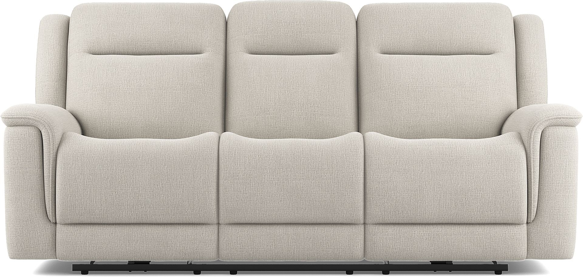 Where soothing relaxation and vibrant connection unfold naturally, the Meadow Park sofa offers a setting grounded in warm tranquility. This transitional collection features soft, padded curves upholstered in cement-colored woven fabric. Scoop seats and pillow arms provide inviting comfort and support to sink into, and the plush seat backs enable blissful sessions of extended relaxation. Dual power reclining includes independently adjustable headrests and footrests as well as USB charging ports on each control panel. This sofa also features a fold down table in the center with cupholders for even more convenient leisure. Upholstery: 100% Polyester.
