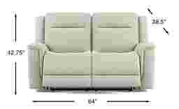 The power love seat fits perfectly in my mobile home living room. And it complements the paint color nicely as well. It is comfortable and the power glides nicely. The charging outlets are definitely a plus! I chose the seafoam green and it's a very soothing color.