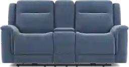 Where soothing relaxation and vibrant connection unfold naturally, the Meadow Park loveseat offers a setting grounded in warm tranquility. This transitional piece features soft, padded curves upholstered in a cobalt blue woven fabric. Scoop seats and pillow arms provide inviting comfort and support to sink into, and the plush seat backs enable blissful sessions of extended relaxation. Dual power reclining includes independently adjustable headrests and footrests as well as USB charging ports on each control panel. This loveseat also features a center console with storage and cupholders for even more convenient leisure. Upholstery: 100% Polyester.