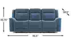 The Meadow Park Cobalt Reclining Sofa features a manual reclining mechanism. This means you can easily adjust your position using a lever or handle, providing a traditional and straightforward way to recline and relax.