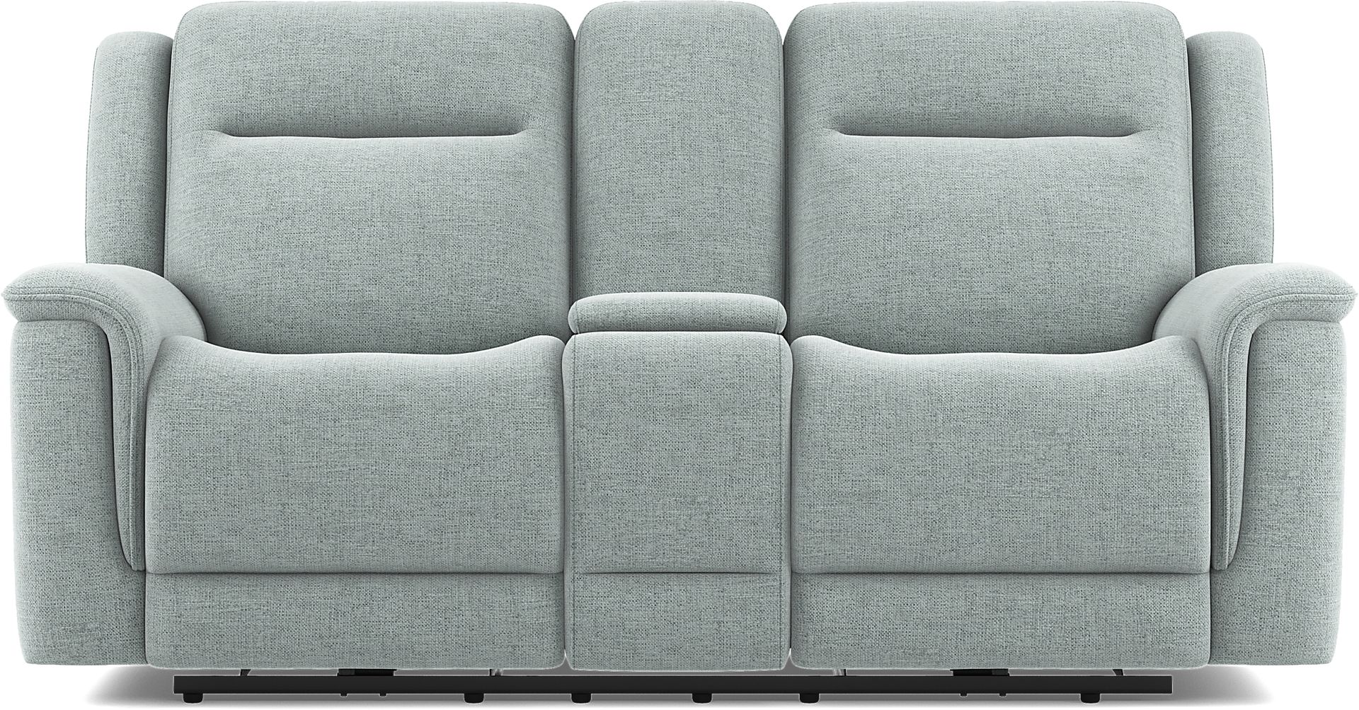 Where soothing relaxation and vibrant connection unfold naturally, the Meadow Park loveseat offers a setting grounded in warm tranquility. This transitional piece features soft, padded curves upholstered in a seafoam-colored woven fabric. Scoop seats and pillow arms provide inviting comfort and support to sink into, and the plush seat backs enable blissful sessions of extended relaxation. Dual power reclining includes independently adjustable headrests and footrests as well as USB charging ports on each control panel. This loveseat also features a center console with storage and cupholders for even more convenient leisure. Upholstery: 100% Polyester.