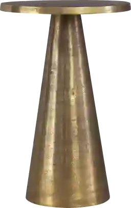 Made of aluminum, this Medo pedestal accent table is finished in an antique brass. With the top's slightly rounded edges, this accent table portrays a softer feel and will be beautiful in a foyer to welcome friends or by your favorite chair. Customer assembly is required.