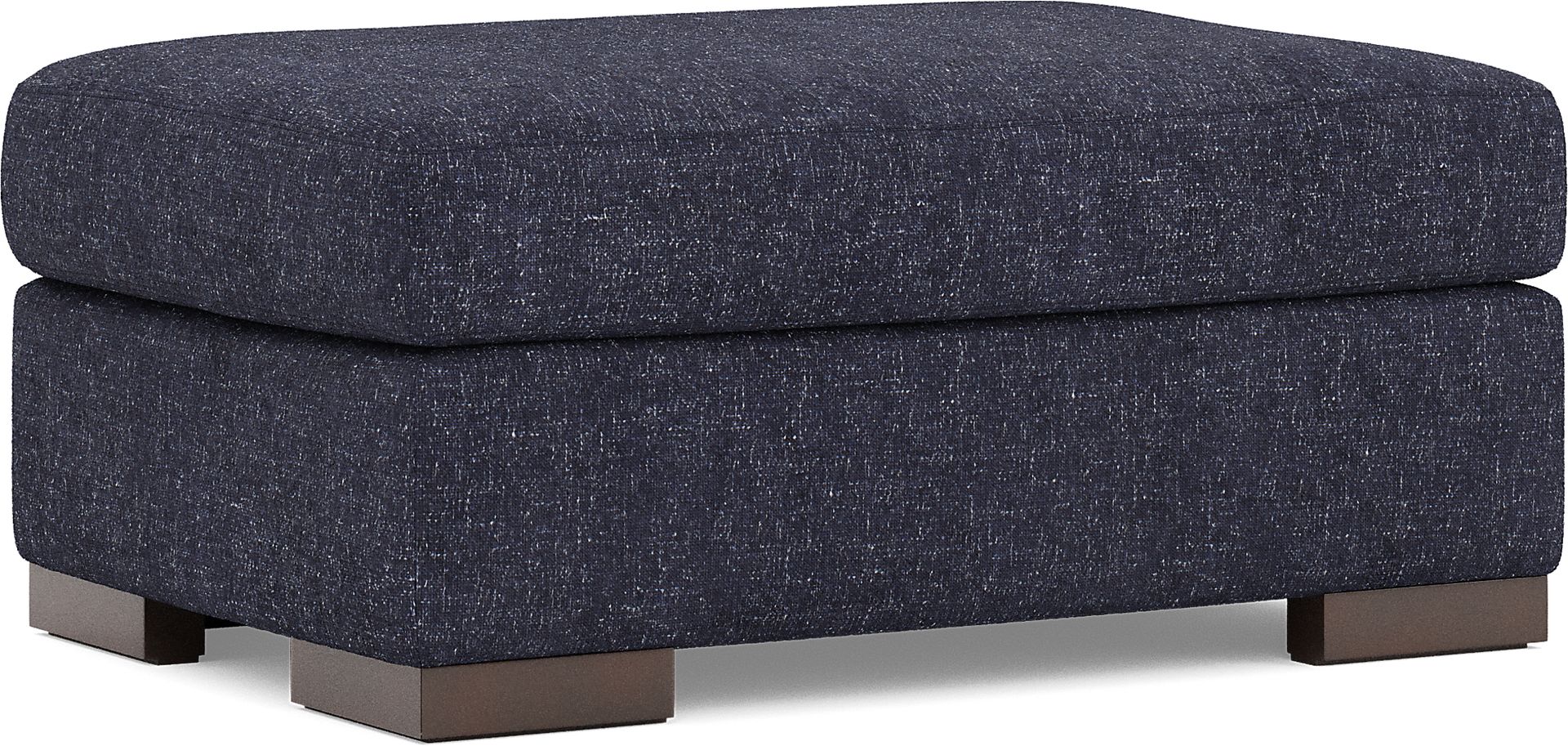 Luxurious intimacy and cozy warmth come together to elevate every minute of quality time spent around the Drew & Jonathan Melbourne ottoman. This casual contemporary piece is upholstered in relaxed midnight blue chenille fabric complemented by a thoughtfully tailored appearance, and it's perfect as a footrest or an extra seat. Upholstery: 95% Polyester 5% Linen.