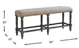 Captivating geometry meets graceful curves and contours in the contemporary stylings of the Melian Woods counter height bench seat. A striking complement for a rich, pleasurable dining experience, the bench invites a more intimate, personal experience. Crafted of acacia wood solids and finished in a rich, luxuriant brown, the sumptuous seat is upholstered in a warm oatmeal color while accent nail heads around the bench provide a striking visual statement.