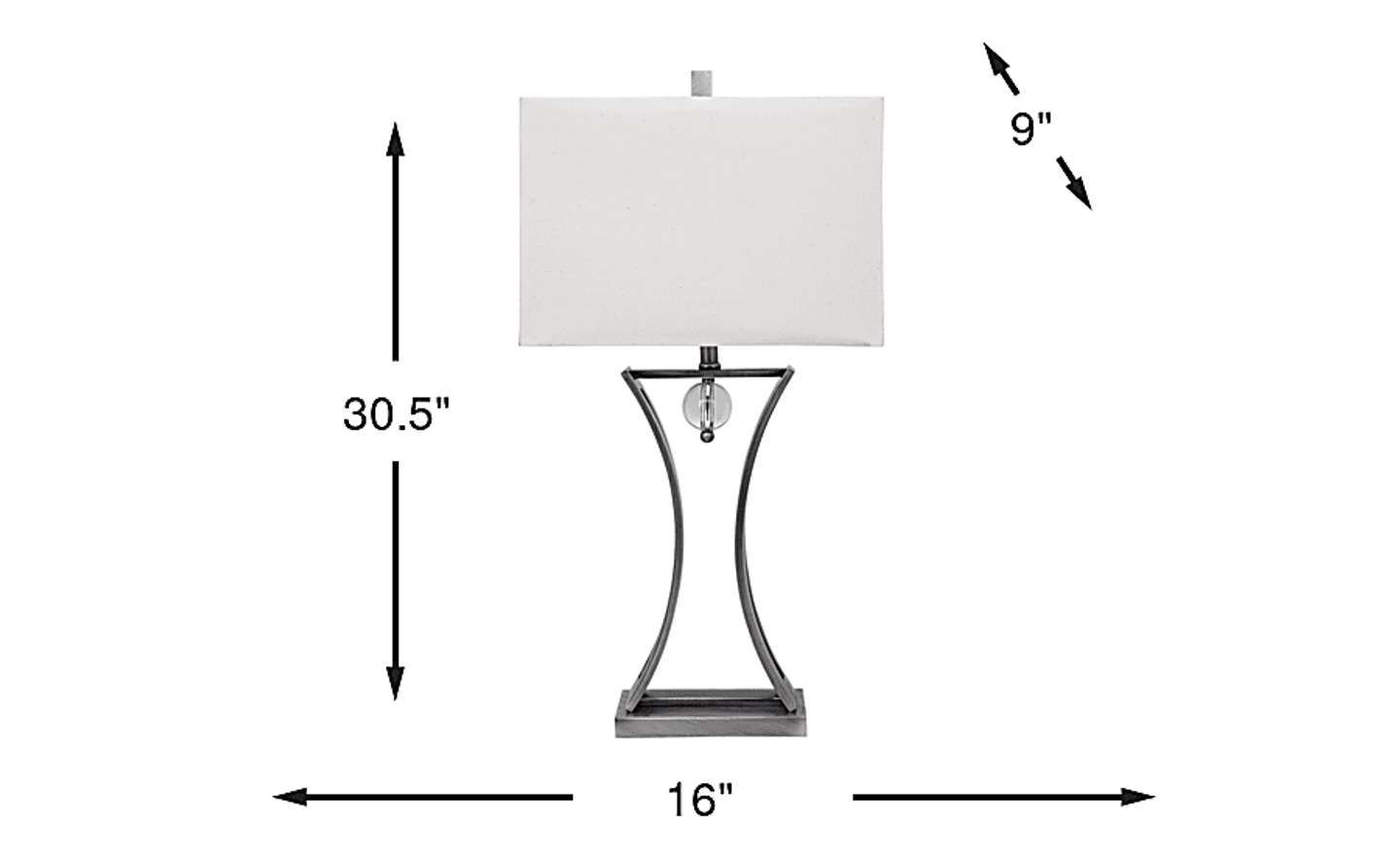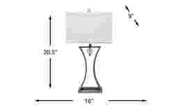 Possessing a rare yet versatile design, the Melisent table lamp will bring a refreshing change to any room. Crafted of sturdy metal with an antique silver finish, its ball sling construction adds unforgettable appeal that looks great from every angle. This lamp includes a 3-way switch that allows you to adjust the brightness according to your needs and takes up to a 100 watt bulb (not included).