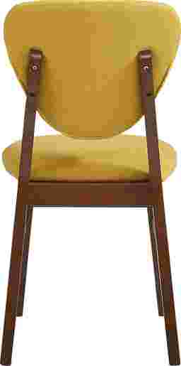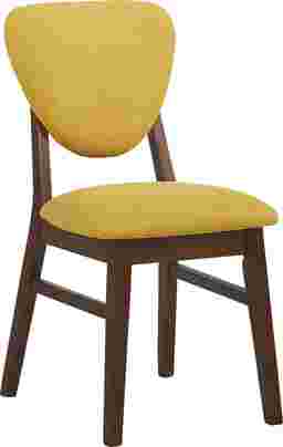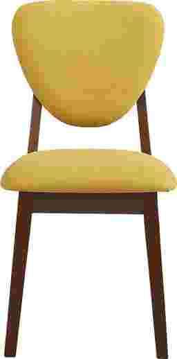 Complete your dining experience with the Melodina side chair. Contemporary in style this piece features yellow upholstery that stands out against oak-finished legs. Crafted with a rounded triangular design its seat back complements the matching Melodina guitar pick dining table.