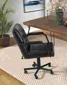 Whether you telecommute daily or use your home office occasionally, the space should be a comfortable one that is conducive to work and productivity. Finding the perfect task chair is an important part of creating a productive, happy space. Equal parts stylish and comfortable, the Meloran desk chair features PU leather upholstery with grid-line stitching on the back cushion, creating a modern look. The fixed tubular metal arms are topped with padding. A foam-padded seat and back keep you feeling comfortable yet supported. The five-spoke caster base grants stability and easy mobility, as well as swivel capabilities. The Meloran desk chair instantly updates the look of your home office and creates an inspiring, comfortable workspace. Customer assembly is required.