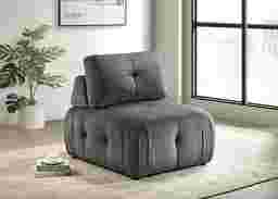Outfit your space with the lavish design of the Menna modular chair. This piece's freestanding nature allows versatility in staging and adapts to various room shapes and sizes. The chair's framing of durable engineered wood is comfortably and fully upholstered in luxe velvet with decorative button tufting, while the seating is amply padded with supportive cushioning. The detachable back cushion and included pillow ease maintenance, furthering this piece's appeal. Customer assembly is required.