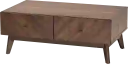 Shape the layout of your living room with the refined, energetic style of the Menominee brown cocktail table. This cocktail table exudes natural warmth with its walnut brown finished wood frame. Two drawers offer secure storage for living room essentials while a long, open shelf offers a convenient display space for decorative items. The Menominee exhibits a dynamic wood grain to convey a robust visual texture. With a sleek, streamlined design, the Menominee cocktail table is a fantastic complement to the modern home. Customer assembly is required.