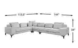 The sophisticated look and feel of a SoHo loft makes the Mercer Place sectional the centerpiece for any room looking to add a touch of Manhattan flair. Walnut wood legs contrast elegantly with the textured bouclé white fabric while Its sleek, low profile contemporary design is accentuated by the cosmopolitan tone of its tuxedo arms and back. Loose seat and back cushions give it a feeling of comfort as well as easier maintenance and greater longevity. Its adjustable loveseat headrests are perfect for late night or lazy afternoon comfort. Upholstery: Texture Boucle Fabric