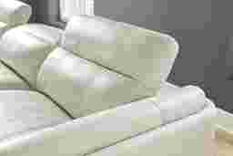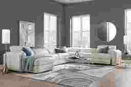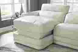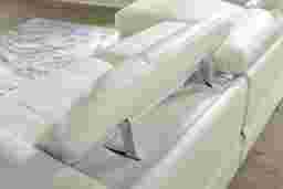 Sumptuous seating with a luxurious wink and nod, the Drew & Jonathan Meridien sectional makes for the perfect family room style. This piece's subtle profile is upholstered in top grain leather where the body touches and is framed by a left arm facing chaise, a right arm facing recliner and an armless recliner. Dual power reclining features allow you to raise or lower the headrest and footrest to any desired position. The control panels even have USB-C charging ports so that you can power up your favorite devices. Tuxedo arms tailor the look with a handsome quality while top-stitched seams and chambered footrests accentuate the sectional's modern style. The leather's ice color provides an irresistible final touch. Upholstery: Top grain leather where the body touches and polyurethane fabric sides and backs.