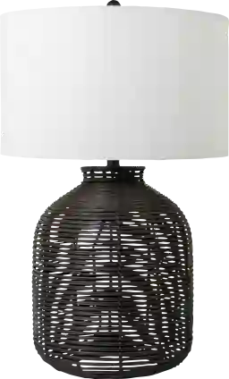 Introducing the Merimac Moor lamp, a perfect addition to your home decor. This stylish lamp combines global style with modern materials for an eye-catching and unique look that will add character to any room. The tall frame is made of a combination of black rattan and metal for a sturdy yet lightweight design. The white linen lamp shade adds an elegant touch while still allowing plenty of light to shine through. Partial assembly may be required.